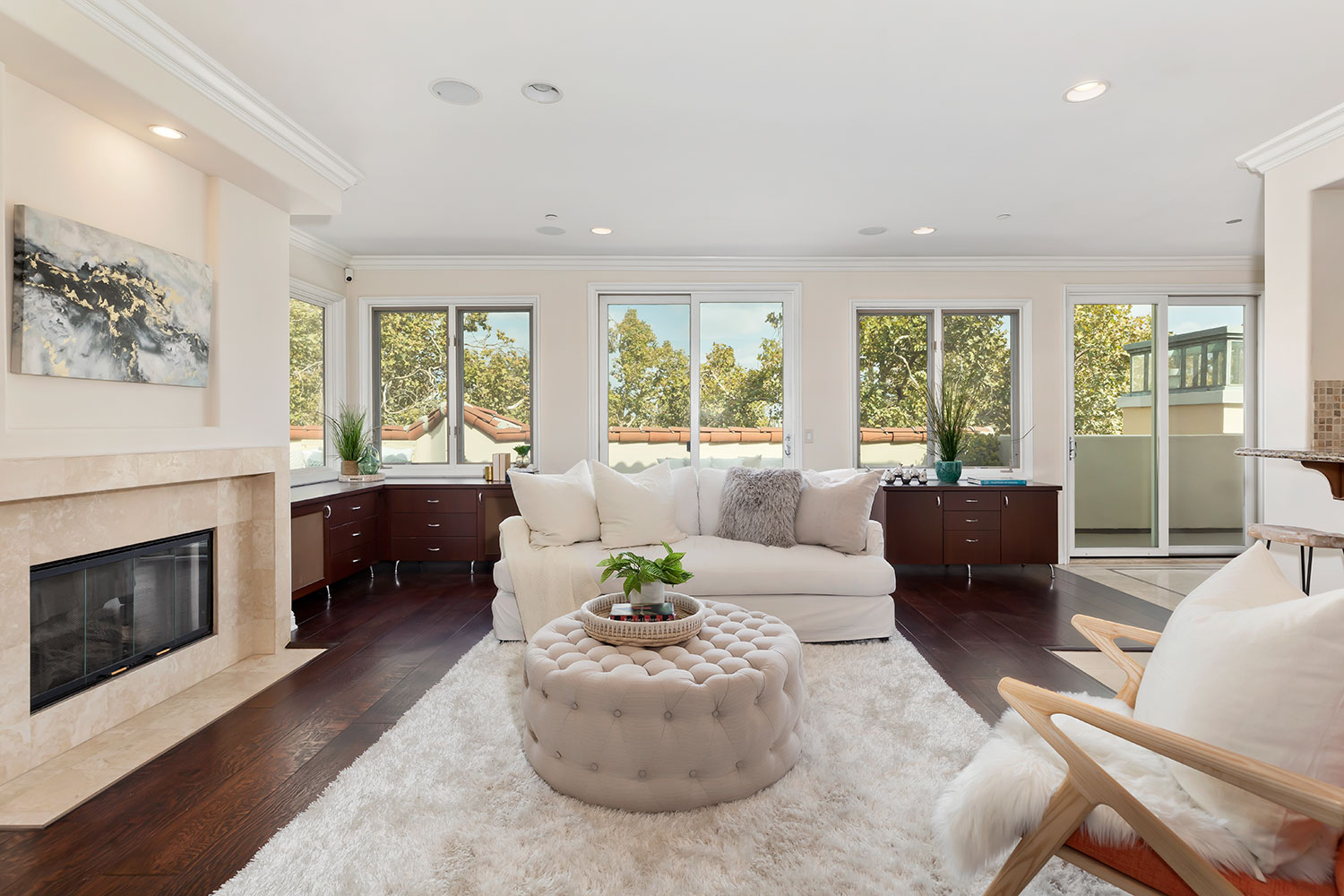 A gorgeous Beverly Hills 3 bedroom 2.5 bathroom penthouse showcases an expansive terrace perfect for entertaining and enjoying the city light and tree top views. Light and bright with beautiful hardwood floors and a great layout. This open kitchen has stainless steel appliances and granite counters. The spacious master bedroom features a fireplace, large walk-in closet and access to patio. 3 side by side garage parking spaces in a secure garage. Located next to Arnaz Park near restaurants and shops.